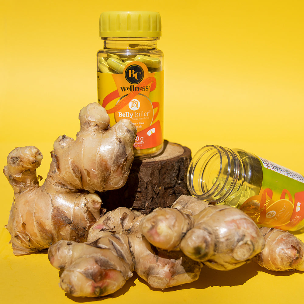 - El jengibre cuenta con un efecto termogénico que aumenta la temperatura corporal del organismo, haciendo así que nuestro cuerpo consiga quemar de manera más eficaz las grasas acumuladas en el vientre, generando una sensación de saciedad y reduciendo el hambre.