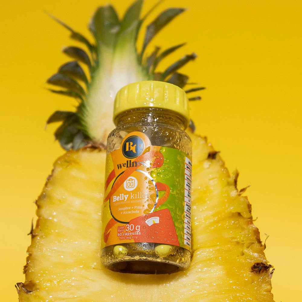 Suplemento alimenticio en cápsulas. Elaborado a partir de ingredientes naturales como, jengibre, piña, nopal, alcachofa entre otros, que han mostrado ser efectivos en la mejora del sistema digestivo, eliminación de toxinas y aceleración del metabolismo, ayudando s nuestro organismo a quemar grasa y controlar el peso.