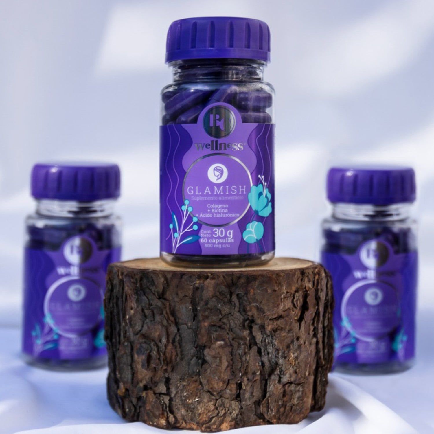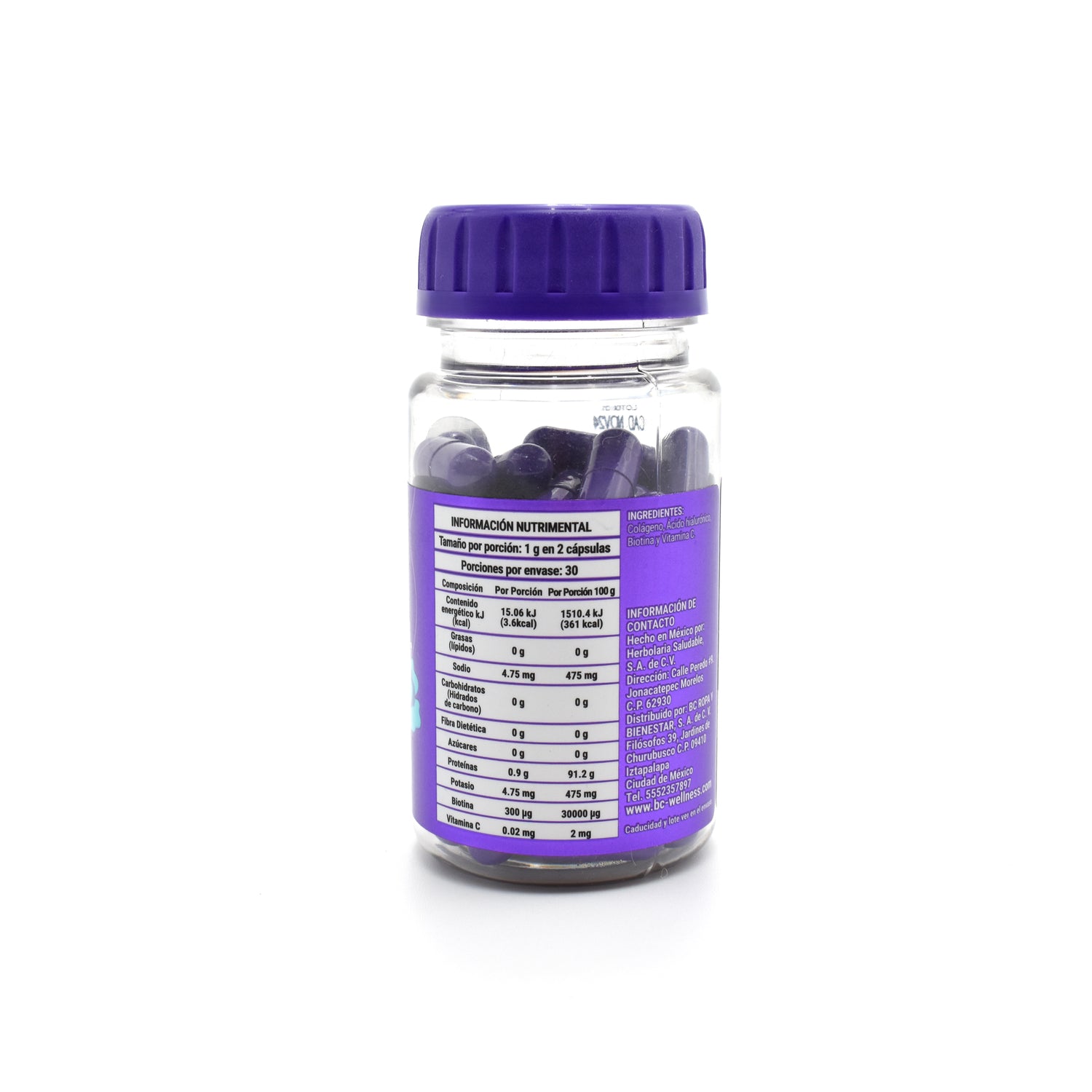 Suplemento alimenticio en cápsulas elaborado a partir de ingredientes naturales como Colágeno y biotina, los cuales han mostrado ser benéficos para hidratar el cabello, la piel y las uñas.