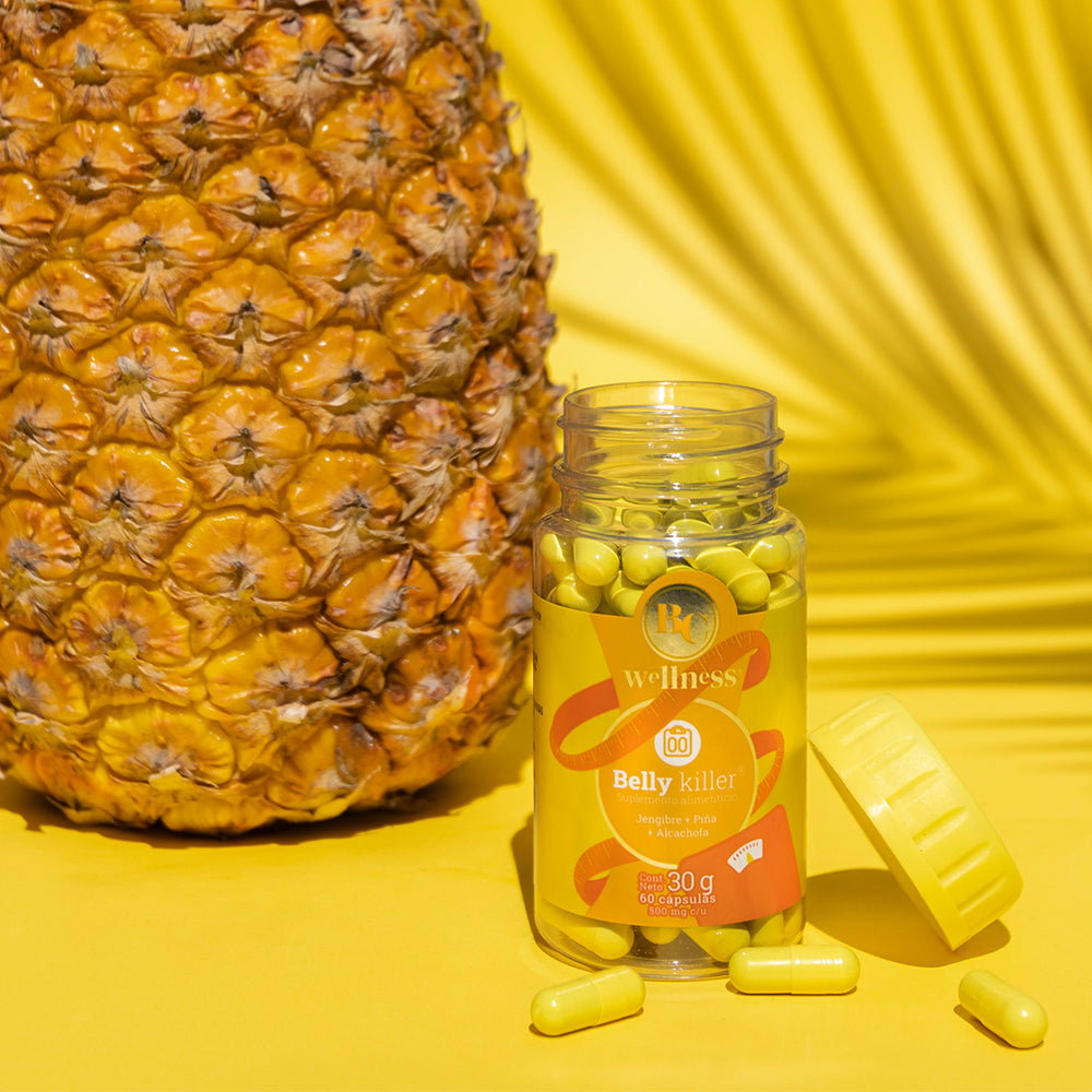 Suplemento alimenticio en cápsulas. Elaborado a partir de ingredientes naturales como, jengibre, piña, nopal entre otros, que han mostrado ser efectivos en la mejora del sistema digestivo, eliminación de toxinas y aceleración del metabolismo, ayudando s nuestro organismo a quemar grasa y controlar el peso.